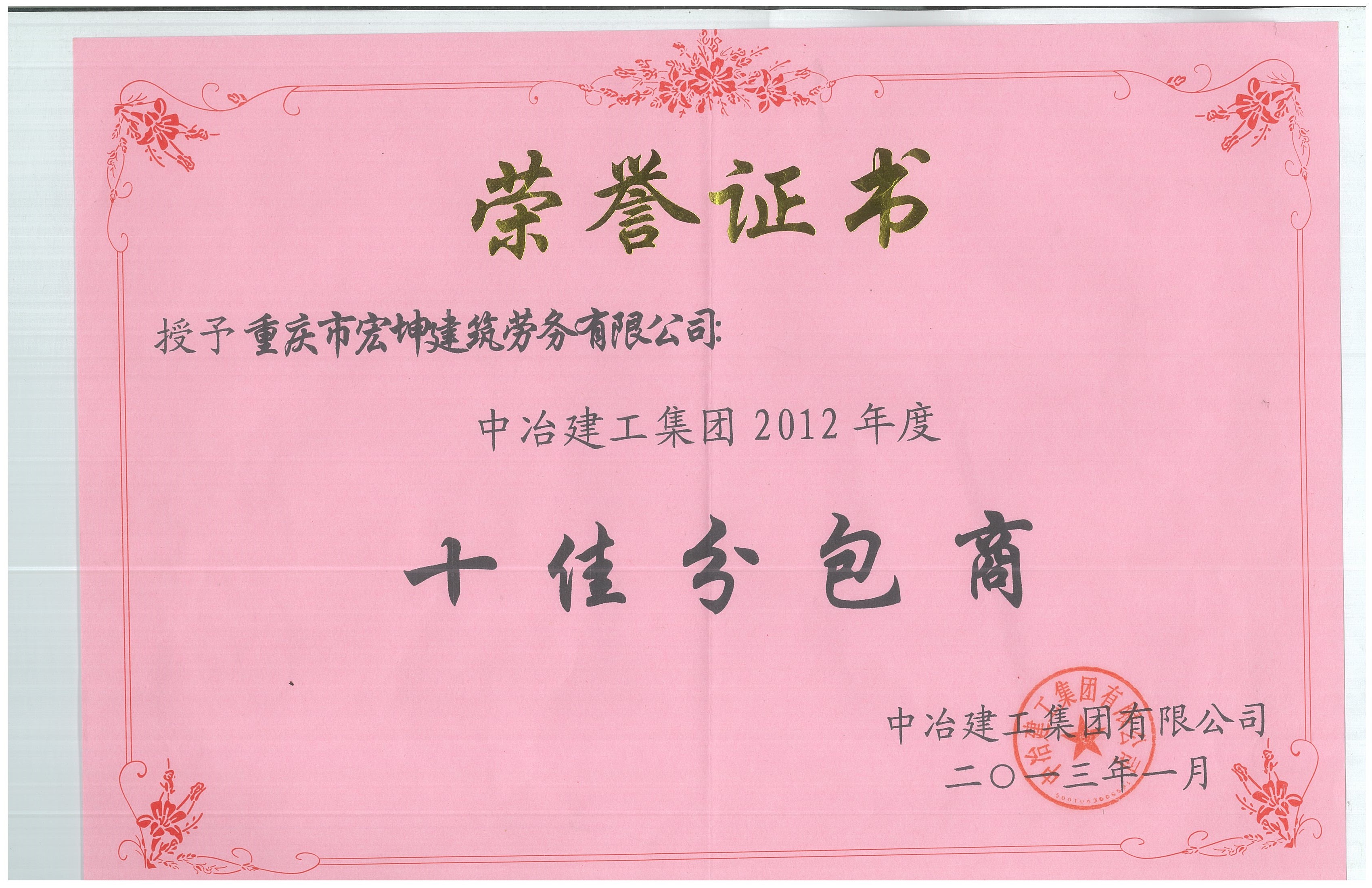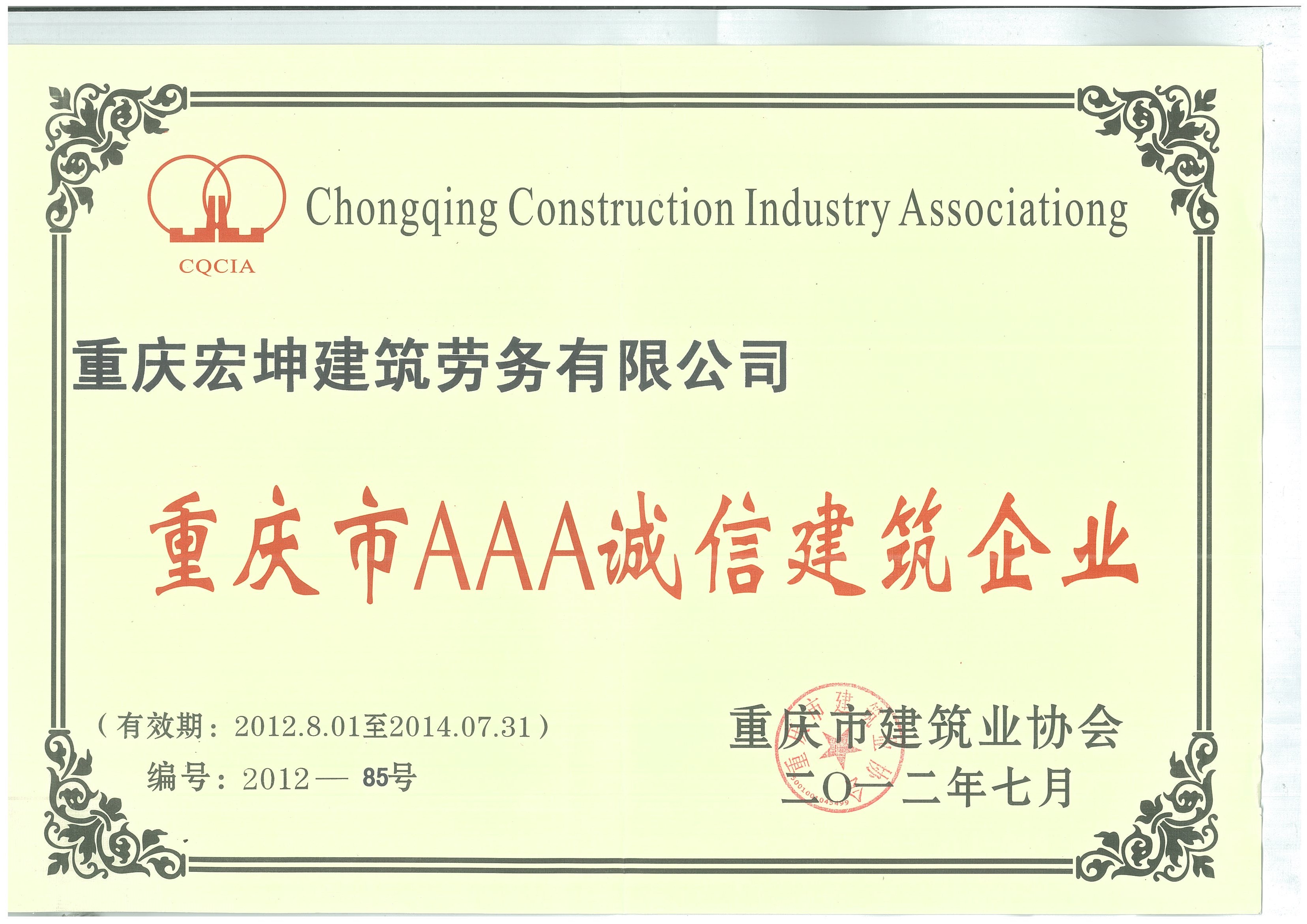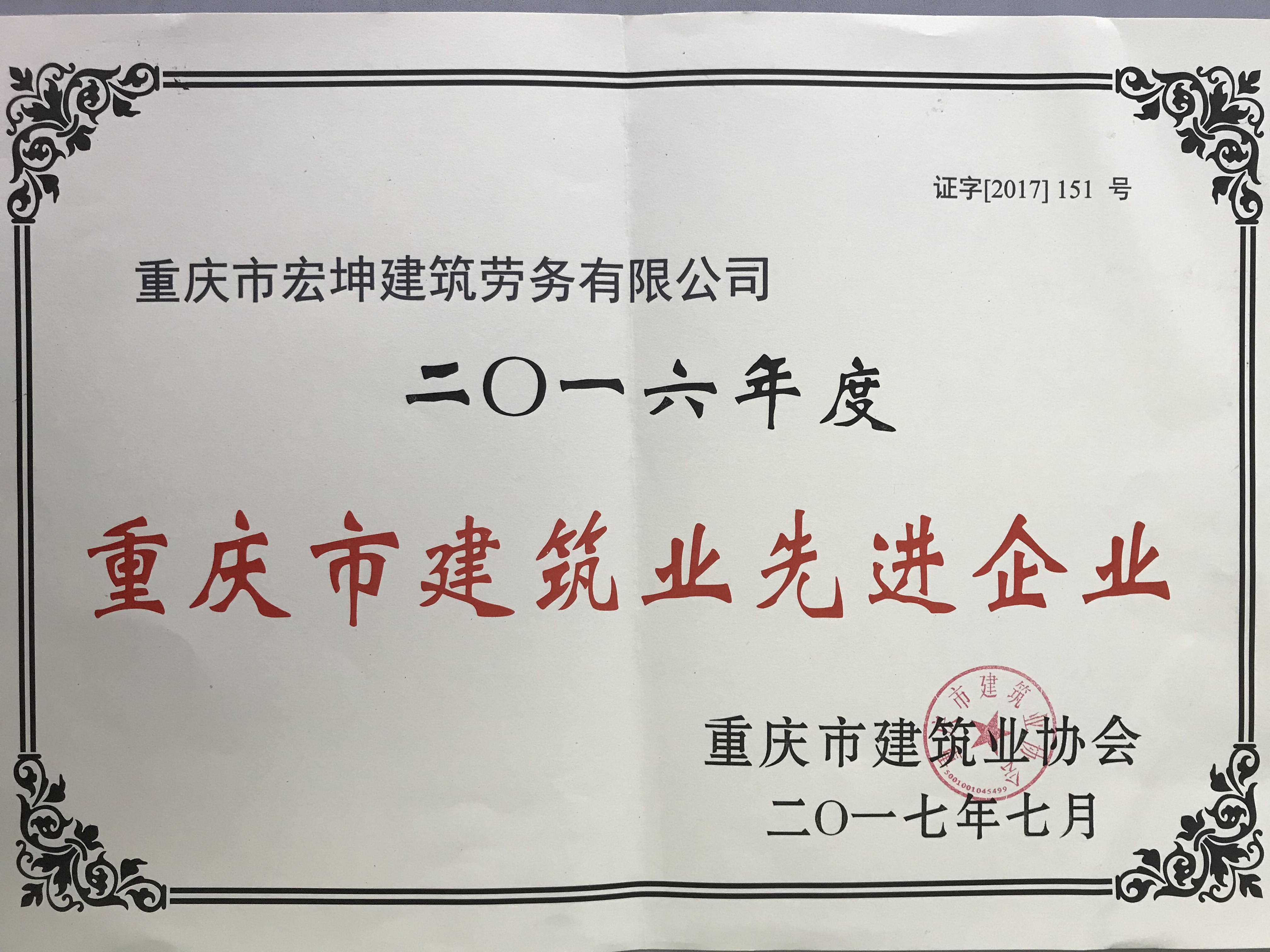 經過多年奮斗,公司先后被評為重慶市建筑業先進企業、重慶市AAA誠信建筑企業以及全國優秀建筑勞務企業,公司領航人張燦國先生,也被評為全國優秀建筑勞務企業經理。